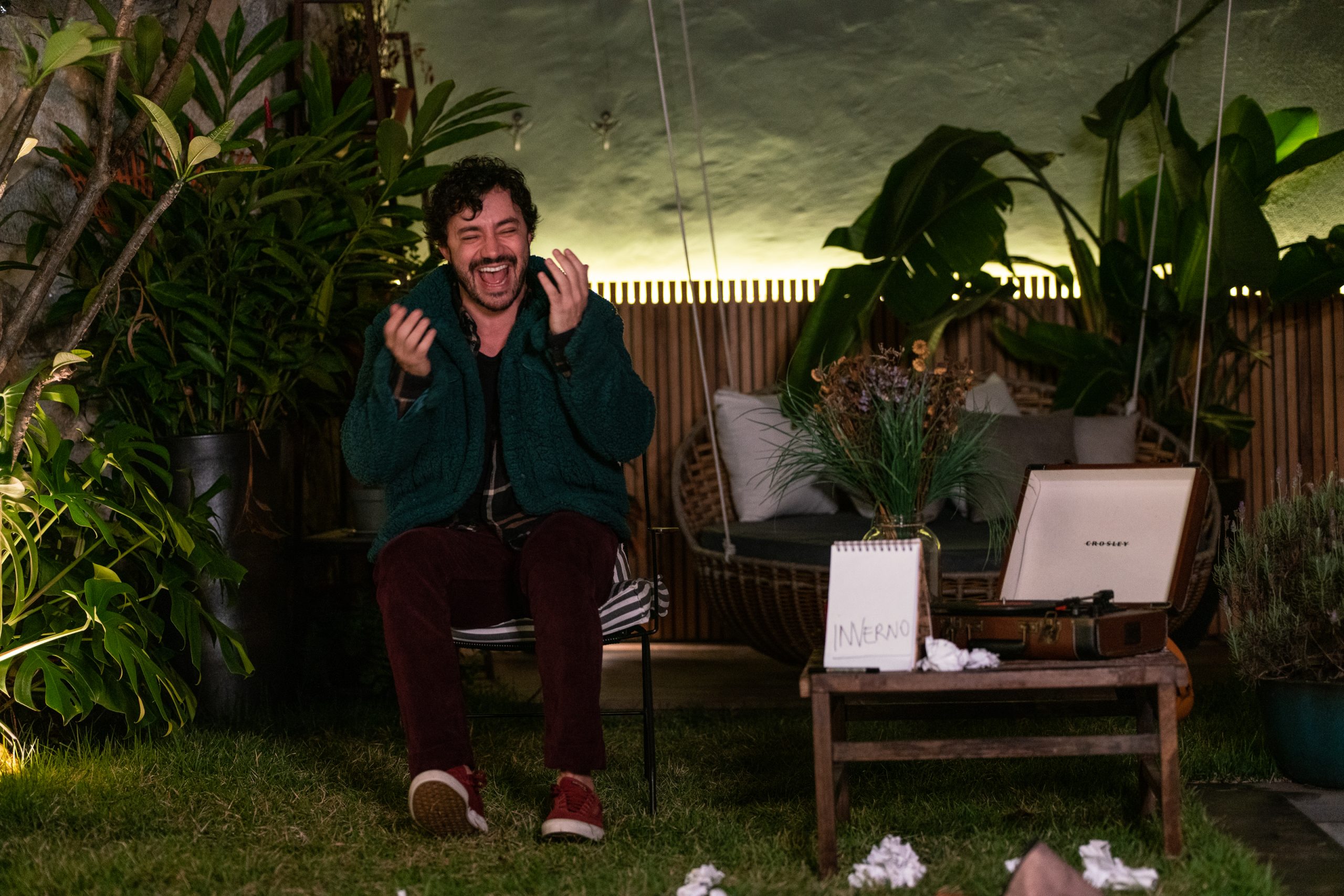 Ao entrar no Sesc Tijuca o cenário de Marco Lima é charmoso, belo, rústico e conversa. De uma vitrola, de dentro de uma mala, nascem plantas, assim como nascem plantas da cadeira onde a mãe estaria sentada. Que ideia e representatividade tão sofisticadas, além de sentidas pelo cenógrafo. “Elas geram oxigênio, alimentos, fibras, combustíveis e remédios que permitem aos humanos e outras formas de vida existir. Elas também são essenciais para o controle da temperatura da Terra e o equilíbrio e dinâmica da água no planeta. Sem plantas não existiria vida!” E sem a mãe seria possível?