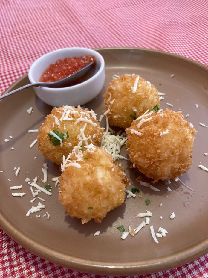Comecei minha experiência gastronômica provando o Arancini (R$ 18) e a Croqueta de Parma (R$ 20). O primeiro petisco é um bolinho de risoto recheado, um super clássico italiano. No caso do restaurante, um queijo super elástico e quentinho recheia esta entradinha, que se estica ao morder o bolinho super crocante. A Croqueta de Parma também era muito crocante e cremosa por dentro, remetendo um pouco ao sabor do tradicional salgadinho de queijo com presunto. As duas entradas são boas opções para abrir o apetite, porém suas frituras poderiam ser um pouco mais sequinhas.
