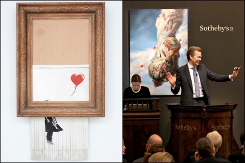 A telas de Banksy fomentam debates e reflexões sobre questões polêmicas da sociedade, como racismo e xenofobia, elas são conhecidas pelo caráter provocativo e de grande impacto, podendo estar relacionadas a temas poéticos, trágicos e/ou cômicos. Ao serem leiloadas as cifras podem atingir facilmente a casa dos milhões. Os colecionadores pouco se importam se são satirizados ou chamados de idiotas pelo próprio artista. Nesta corrida pela obra mais rara vale aceitar até mesmo o que sobrou do “Girl with balloon” e ainda sair feliz por ter comprado a única obra de arte da história feita no ato do seu leilão – em 2018 o artista disparou um dispositivo que retalhou o quadro assim que ele foi comprado. Posteriormente a obra foi rebatizada por “Love is in the bin”.