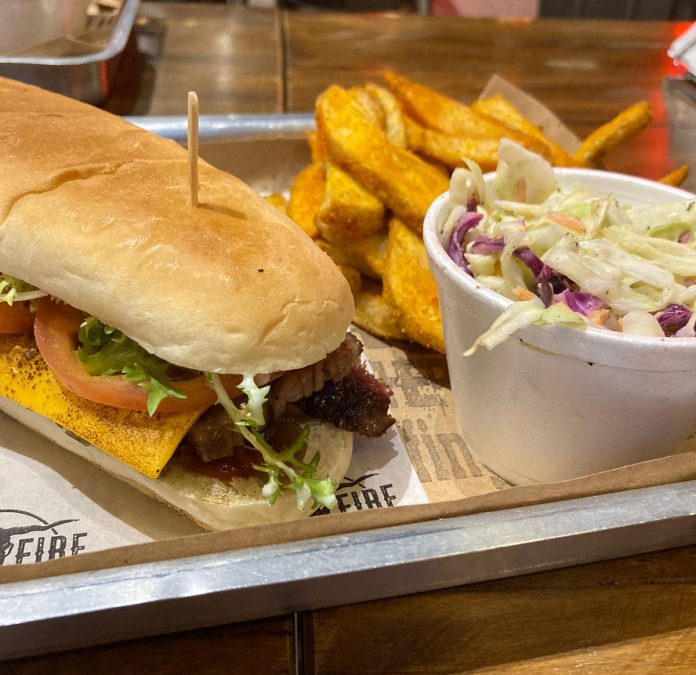 Ao chegar no restaurante, você recebe o cardápio e vai para fila fazer seu pedido, diferente dos à la cartes usuais, onde os garçons tiram o pedido na mesa. Chegando na mesa, você já se depara com três molhos artesanais (Barbecue, BBQ picante e maionese) que são muito bons. Destaque para o BBQ picante, que não arde muito, mas é um diferencial positivo em relação ao tradicional Barbecue. Para provar todos esses molhos eu pedi o croquete de brisket (R$ 14,90), que vem dois. O custo benefício é alto, uma vez que o croquete é delicioso. Super suculento e muito bem frito, acompanhado por cima com um pouco de maionese, que é muito boa. Uma ótima opção de entrada para começar bem a refeição. Antes de pedir meu prato principal, conferi ainda o Steak Sandwich (R$ 35,90), com fritas e Coleslaw. A batata rústica vinha com páprica e estava muito boa! Não era muito grossa, sendo macia por dentro, crocante por fora e com uma fritura bem sequinha. A salada Coleslaw veio bem temperada, também servida com a maionese artesanal representa muito bem a tradicional salada de repolho americana. O sanduíche vem com alface, tomate, cebola caramelizada, barbecue e Brisket. O conjunto fica muito bom, não sendo muito pesado e equilibrando muito bem com os acompanhamentos. Para prato principal pedi o combo degustação (R$ 49,90) que é uma ótima opção para conhecer diversos sabores americanos. A bandeja vem com uma coxa de frango, dois pedaços de Brisket, uma linguiça de pernil, um pouco de Pulled Pork, além de poder escolher entre batata ou mac’n’cheese e uma salada.  O combo, assim como todos os pratos, vem servido em uma bandeja de alumínio coberta apenas com um papel, sendo um empratamento bem rústico e bacana, que combina com toda a temática local. O frango estava soltando do osso, o Pulled Pork bem molhadinho com um gosto adocicado do Barbecue, a linguiça com um gosto de defumado e o Brisket fantasticamente suculento. O tradicionalíssimo mac’n’cheese estava muito gostoso e quentinho, sendo uma ótima opção para complementar o combo. Na salada escolhida, o couscous estava bem refrescante e leve equilibrava o prato todo. De sobremesa, a banana defumada com sorvete de creme e doce de leite (R$ 14,90) fechou muito bem toda a refeição. Para comer tudo isso pedi a famosa limonada defumada do local (R$ 12,90) que vem em uma garrafinha de meio litro. A bebida é super aromatizada com gengibre e canela, é muito refrescante e tem o azedinho da limonada presente na medida certa. O atendimento todo foi muito bem feito por João, que ajudou sugerindo o sanduíche e veio à mesa diversas vezes conferir se estava tudo certo. O restaurante é uma ótima opção para os trabalhadores do Centro do Rio, não só pelo ótimo custo benefício, mas também pela velocidade do serviço. Durante toda minha estadia no restaurante, os pedidos saíram bem rápido, fator positivo para quem tem a hora de almoço bem cronometrada.