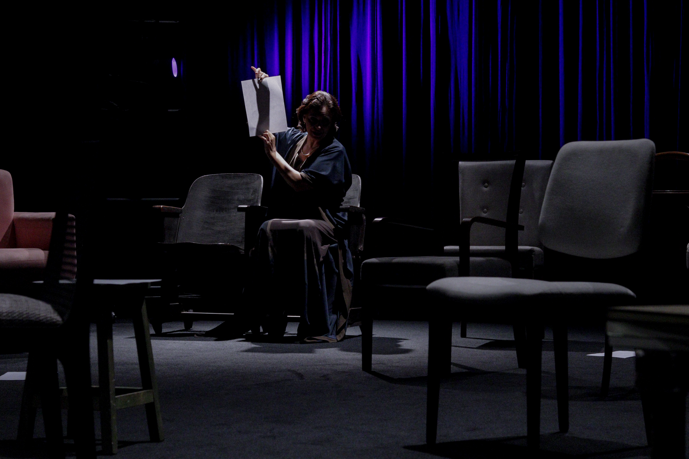 Tuca Moraes se deixa conduzir pelo pulsar de palavras, frases, memórias, sentimentos, e pensamentos, acumulados uns sobre os outros, como num espiral. Linguagem e sentidos vão se fazendo ali à vista dos espectadores. A atriz se deixa conduzir pelo encontro com o público tornando o espetáculo um experimento único. O diretor faz intervenções de som e luz que provocam a atriz.