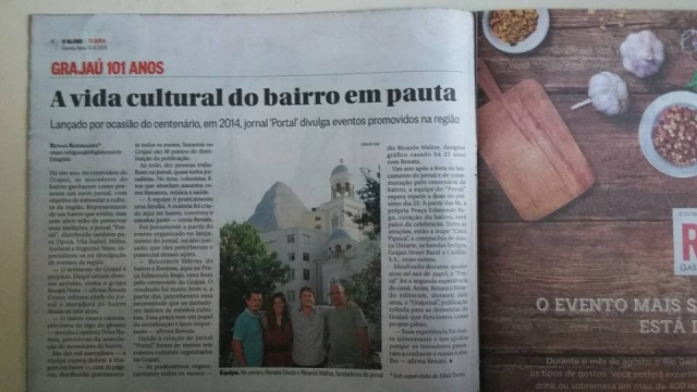 Evento de Aniversário de 101 Anos do bairro do Grajaú, no Rio de Janeiro, onde se localiza a sede do Jornal Portal. A festa, realizada dia 23 de agosto de 2015, promovida pelo Jornal Portal, pela Escola Livre Vila Musical, pela Associação de moradores do Grajaú (AMGRA), com apoio da Associação Atlética Light, do Supermercados Prix e do comércio local, reuniu mais de 2 mil pessoas na Praça Edmundo Rego. Contou com diversas atrações artísticas e circenses, dentre elas a Big Band da Escola Livre Vila Musical, a Trupe do Circo Pipoca, Uniarte Escola de Dança, Escola Carioca de Dança, Vivá Cia. de Dança, ainda teve os shows das bandas Cadillac S.A., Índigos e a banda superstar Consciência Tranquila, que transformou a praça num enorme baile de charme e black music.