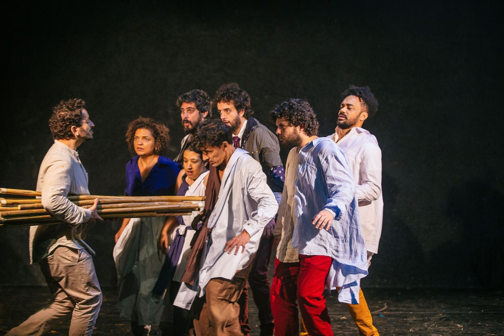 A transformação do João chama mais a atenção, ao que é significante e necessário pois é exatamente aí, que a dramaturgia define sua forma. Nada detém tanto a atenção, quanto a potência cênica dos oitos atores em cena.