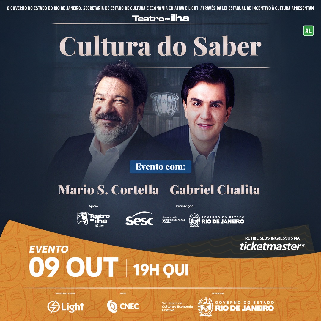 Em mais uma iniciativa que reforça seu compromisso conjunto com a valorização da educação e da cultura, a Secretaria de Estado de Cultura e Economia Criativa do Rio de Janeiro (SececRJ) e o Sesc RJ realizam, no dia 9 de outubro, às 19h, no Teatro da Ilha, o encontro Cultura do Saber. O evento marca as comemorações do Dia do Professor e homenageia educadores de todo o estado, reunindo grandes nomes do pensamento brasileiro em uma noite de reflexão, troca de ideias e reconhecimento à importância do magistério. A entrada é gratuita, com ingressos disponíveis exclusivamente na página do Teatro da Ilha no Instagram: https://instagram.com/teatrodailha